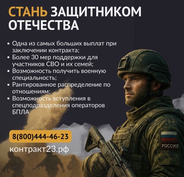 В Краснодарском крае действуют лучшие условия при подписании контракта на военную службу с Минобороны России.