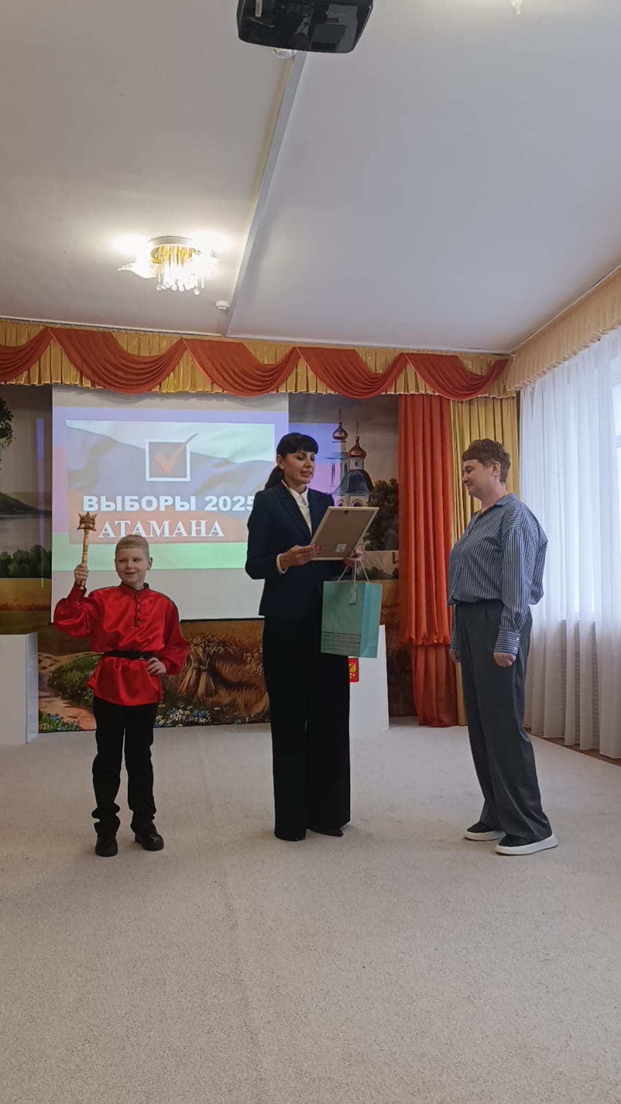 Гости поздравили ребят с победой, Юлия Юрьевна отметила особую роль учреждения в формировании правовых знаний среди дошкольников. Она торжественно передала заведующему Наталье Дмитриевне благодарственное письмо от избирательной комиссии, подчеркнув высокий уровень организации воспитательной деятельности. Алексей Николаевич вручил новоизбранному атаману символ власти – булаву и дал мудрые наставления, основанные на казачьих заповедях.