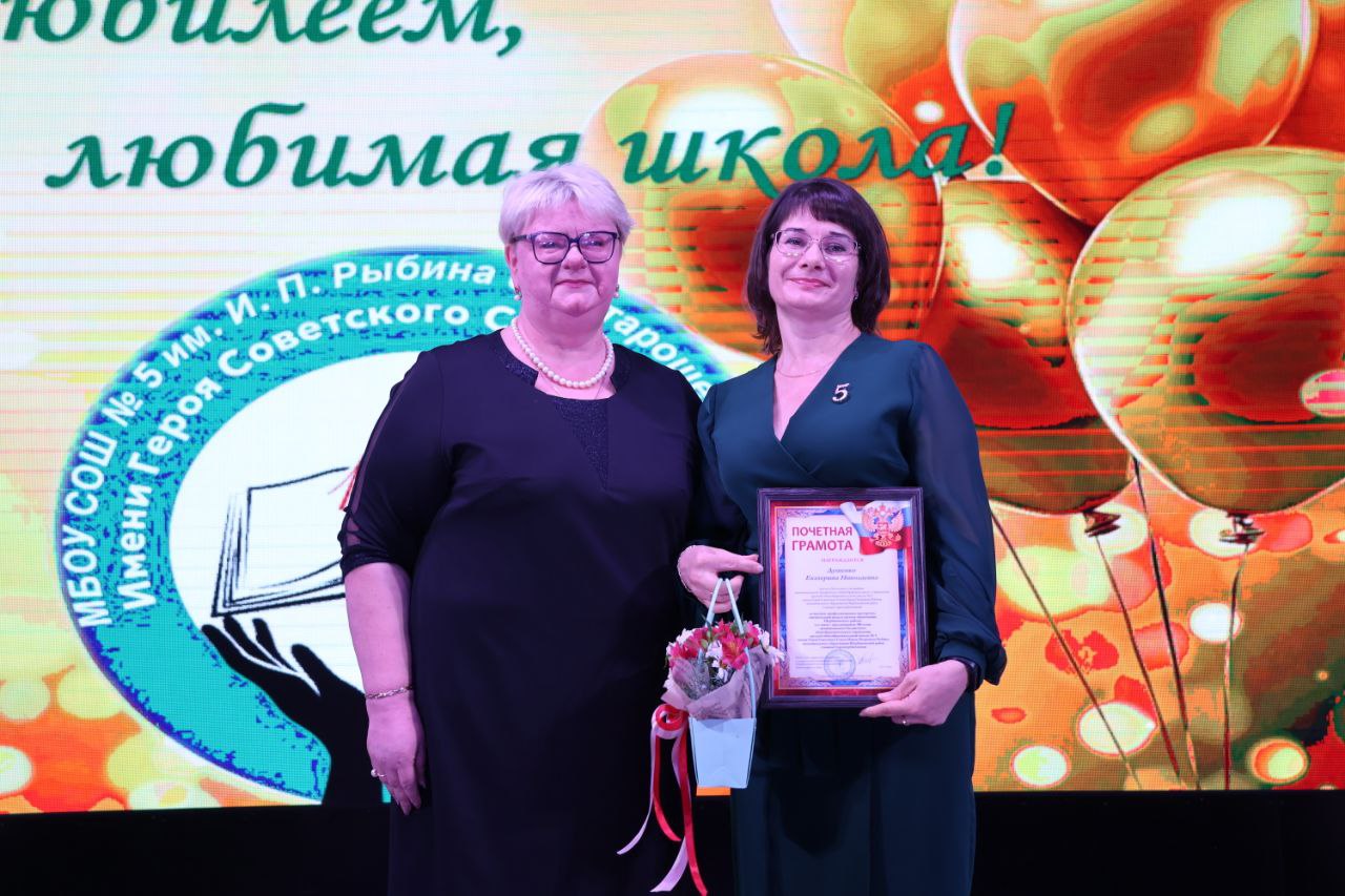 Сегодня в Центре народного творчества станицы Старощербиновской прошло праздничное мероприятие, посвящённое юбилею школы № 5! Торжественное мероприятие объединило под одной крышей учащихся, выпускников, педагогов и уважаемых гостей. Учащихся школы, ветеранов педагогического труда и учителей с этой знаменательной датой пришли поздравить заместитель главы района Ирина Киселева, председатель Совета муниципалитета Дмитрий Кувалдин, председатель Щербиновского районного Совета ветеранов Михаил Кряжов, начальник управления образования Ольга Гуро, председатель Щербиновской районной организации Профессионального союза работников образования Ирина Белоброва, председатель территориальной избирательной комиссии Щербиновская Юлия Галкина. За многолетний добросовестный труд, профессиональное мастерство и в связи с юбилеем школы Ирина Сергеевна, Дмитрий Васильевич и Ольга Алексеевна вручили педагогам Благодарности главы муниципалитета и Благодарности управления образования администрации района. Во время праздника гостей и всех присутствующих познакомили с яркими страницами жизни школы. Прозвучали видеопоздравления от выпускников разных лет, многие выпускники в этот день приехали на мероприятие издалека, чтобы подарить теплые и самые добрые слова своим дорогим учителям. Много слов благодарности на праздничном мероприятии было адресовано учителям и ветеранам педагогического труда. Присоединяясь к поздравлениям, желаем школе и впредь оставаться дружной семьëй, сохранить и приумножить традиции, ещё больше любознательных учеников, побед во всём, процветания и благополучия.