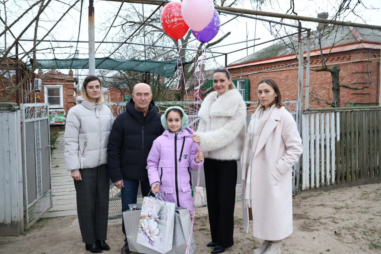 Поздравить именинницу с днем рождения в село Глафировка приехали заместитель главы района Антонина Кочерга и председатель Щербиновского районного Совета ветеранов Михаил Кряжов, сотрудники администрации поселения. Отец Илоны Денис Ломовцев погиб в июле 2024 года, доблестно защищая наше Отечество. Денис Анатольевич за личное мужество и отвагу награждён медалью Суворова, наградами "За службу на Кавказе " II степени, орденским знаком "За Веру, Кубань и Отечество" I степени, а также Орденом Мужества посмертно... Антонина Леонидовна и Михаил Николаевич подарили девочке подарки и пожелали успехов в учёбе, творчестве и всего самого наилучшего.