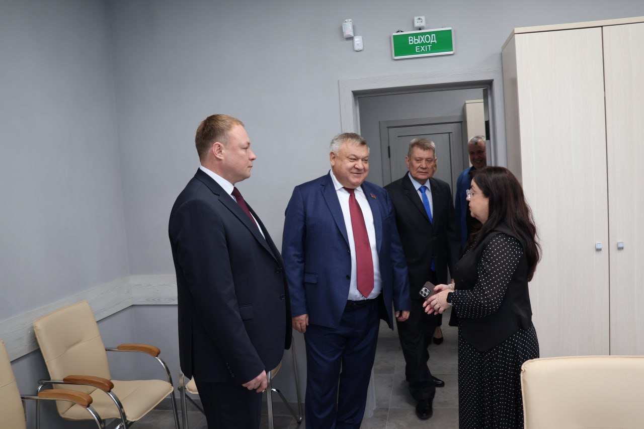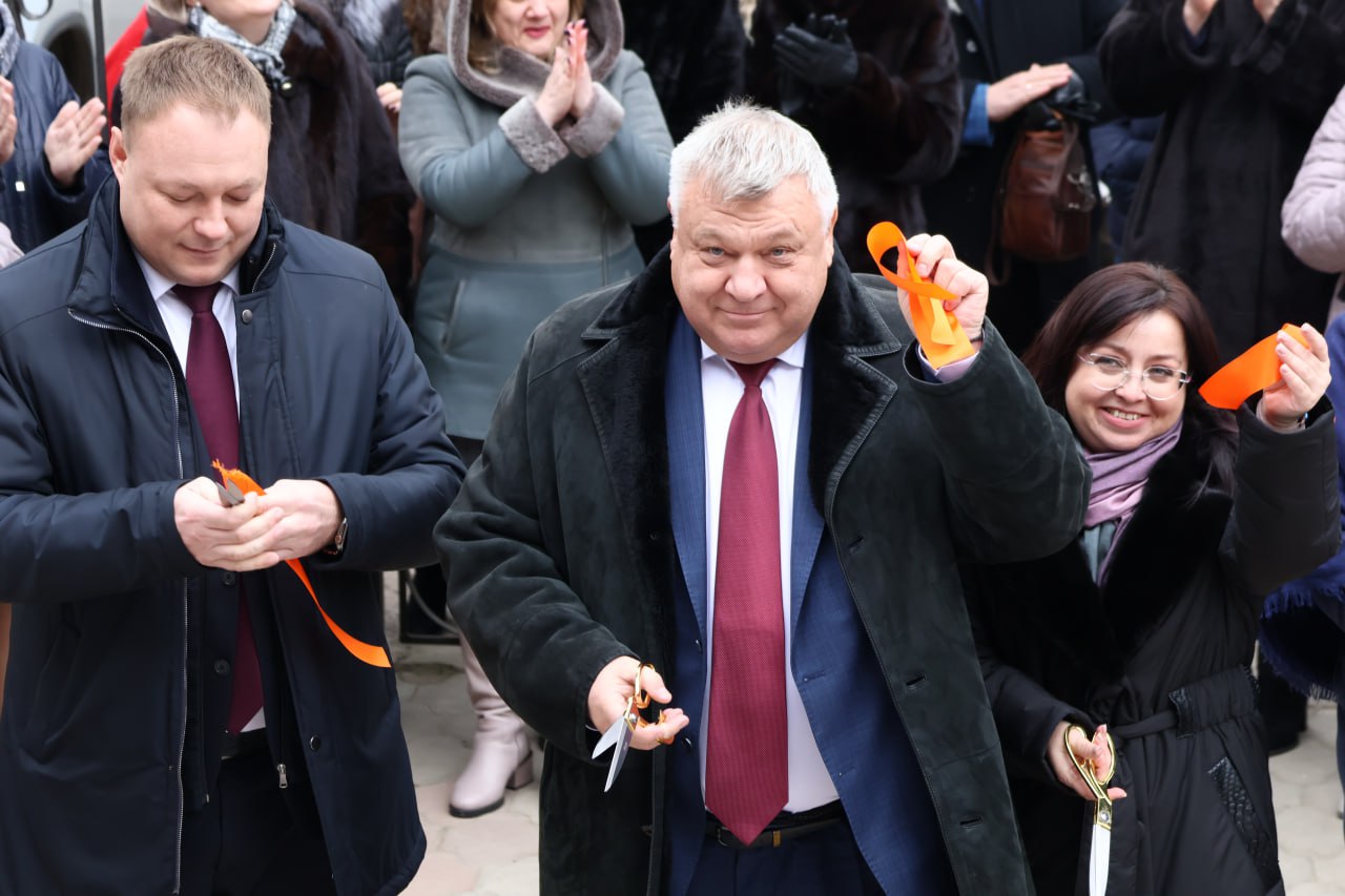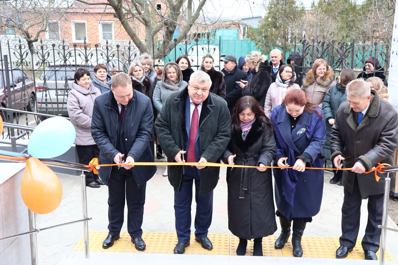 Руководитель района Сергей Дормидонтов месте с депутатом Законодательного Собрания Краснодарского края Владимиром Лыбаневым, исполняющим обязанности заместителя министра труда и социального развития Краснодарского края Натальей Худжиной, руководителем «Центра занятости населения Краснодарского края» Андрощук Инной и руководителем филиала Центра занятости населения Краснодарского края в Щербиновском районе Игорем Крикуновым открыли обновленный центр занятости.