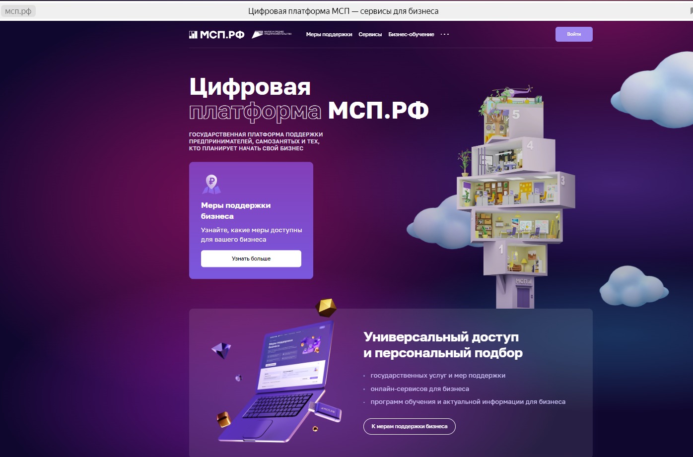 Цифровая платформа МСП.РФ — государственная платформа поддержки предпринимателей со всей России.