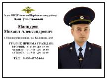 Дорогие жители района. Будьте бдительными!В столь непростое время просим всех жителей быть бдительными! Подготовили для вас информацию об участковых, которые работают на территории нашего района. Обязательно сохраните эту информацию. Если вы не знаете, какой участковый закреплен за вашей территорией, вы можете легко найти его по вашему адресу на сайте Министерства внутренних дел РФ по ссылке: https://clck.ru/F7rDf