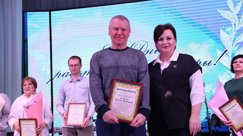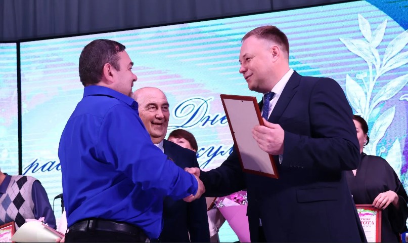 На праздничном мероприятии Сергей Юрьевич и Михаил Николаевич вручили лучшим работникам отрасли Почетные грамоты администрации района и Благодарности главы муниципалитета. Ирина Сергеевна отметила работников профсоюзными наградами.