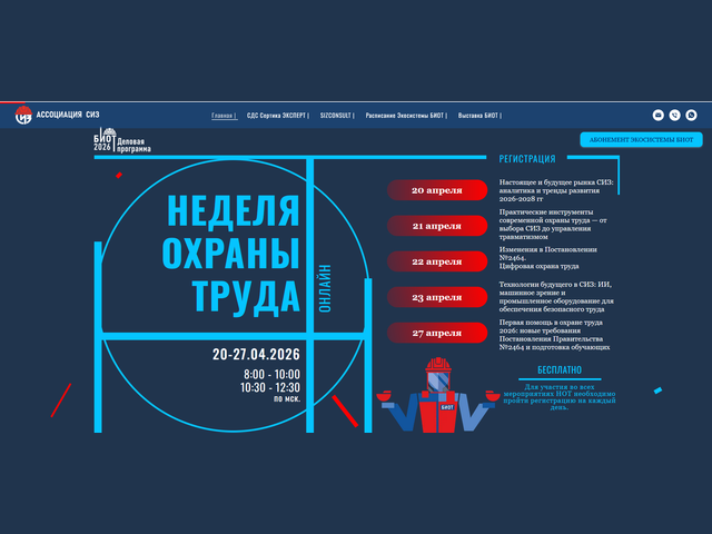 С 20 по 27 апреля 2026 года Ассоциация «СИЗ» проводит Неделю охраны труда в онлайн-формате для всех регионов России.