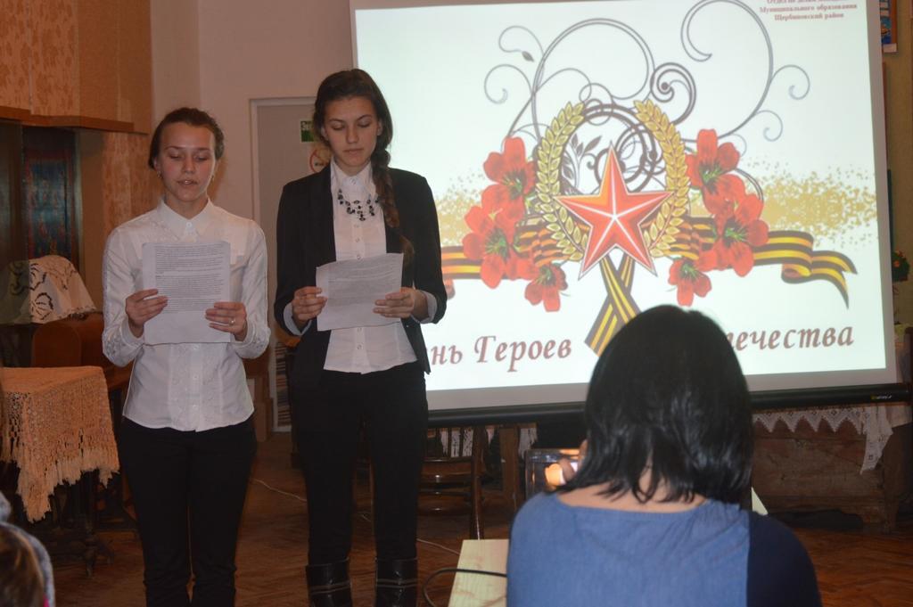 Присутствовали почетные гости: ветеран ВОВ Пешков М.Е., председатель совета первичной организации «Ветераны войны в Афганистане» Котенко В.В., священник отец Александр. В своих выступлениях гости отметили, что праздник День Героев Отечества необходим всем живущим ныне поколениям – от фронтовиков ВОВ до участников событий в Афганистане и на Кавказе, участникам других локальных войн и конфликтов, а главное, юному поколению – будущим защитникам Родины.