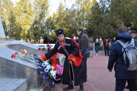 Сегодня, у мемориального комплекса с «Вечным огнём» в станице Старощербиновской прошёл митинг, посвящённый памяти ребят, погибших в вооружённом конфликте на территории Чеченской республики.