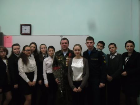 В МБОУ СОШ № 3 в 8 классе присутствовали гости: ветеран Афганской войны Котенко В.В., курсант Воронежской военной академии им.Ю.А. Гагарина А.Загребельный, курсант Рязанского высшего военного училища Н.Белый.