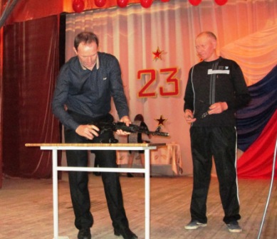 Наши участники-мужчины показали все, на что они способны. В конкурсе «Строевая», уверенно маршируя, спели песню. Так же показали свои знания и смекалку в конкурсе «Тактическая подготовка». Мужчины состязались в ловкости и быстроте реакции в конкурсах «Солдатская служба», «Виват, мужчины!» Под силу им был и музыкальный конкурс, где они безошибочно угадывали военные песни. Удивили мужчины зрителей тем, как одинаково умело справились с «Нарядом по кухне» (где нужно было почистить картофель, луковицу, причем еще мелко ее нарезать, морковь натереть на терке, перебрать фасоль и горох), разобрать и собрать автомат в очень короткое время. Настоящим украшением программы стал «Танцевальный» конкурс, в котором мужчины покорили своим обаянием, задором, индивидуальностью. Между конкурсами звучали песни в исполнении работников Николаевского сельского Дома культуры В.П. Потапенко и А.Н. Дымченко. Присутствующих мужчин поздравил глава Николаевского сельского поселения Н.Г. Сиротенко и вручил им памятные сувениры. В завершении праздника мужчины, участвовавшие в шоу – программе выразили слова благодарности ее организаторам и желание участвовать в дальнейшем в таких мероприятиях.