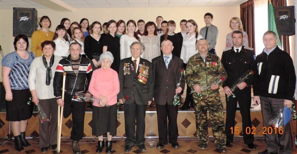 На мероприятии присутствовали учащиеся 9-11 классов СОШ № 9 и 10, участники боевых действий в Афганистане ст.Новощербиновской: Таран Н.А., Шостак А.П., матери воинов-афганцев: Малинко Н.Я., Сапельникова Т.А., гости: заместитель Председателя районного совета ветеранов Коваль Н.И., ветеран Великой Отечественной войны Пешков М.Е., Начальник отдела военного комиссариата Краснодарского края по Щербиновскому району полковник Крикунов И.В., атаман Новощербиновского казачьего общества Соломаха Е.А., глава Новощербиновского сельского поселения Шульга С.А. В начале мероприятия был показан видеоролик «Хроники Афганистана». Далее ведущими (Каламбет Г. и Дёмина Н.) было сказано, что эта дата – дань памяти всем, кто причастен к героической и трагической войне в Афганистане, прозвучали Гимн России и гимн Кубани.