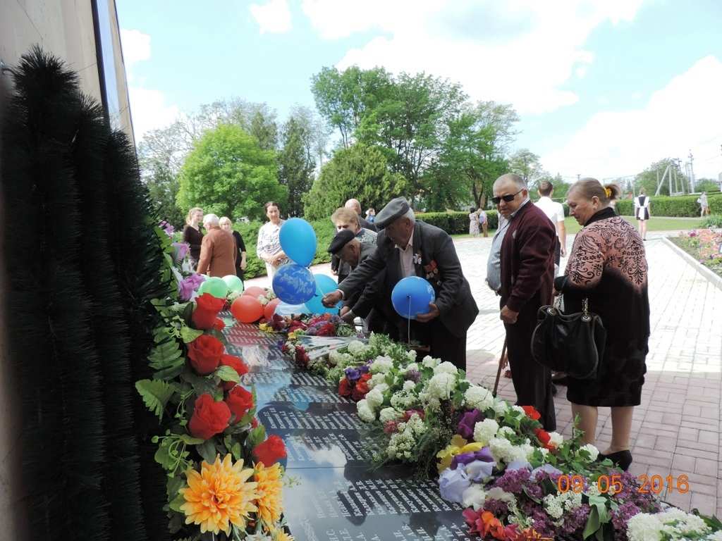Объявлена минута молчания, прошло возложение венков, цветов к мемориалу. В заключении прозвучала песня «День Победы» в исполнении И.Белоусова.