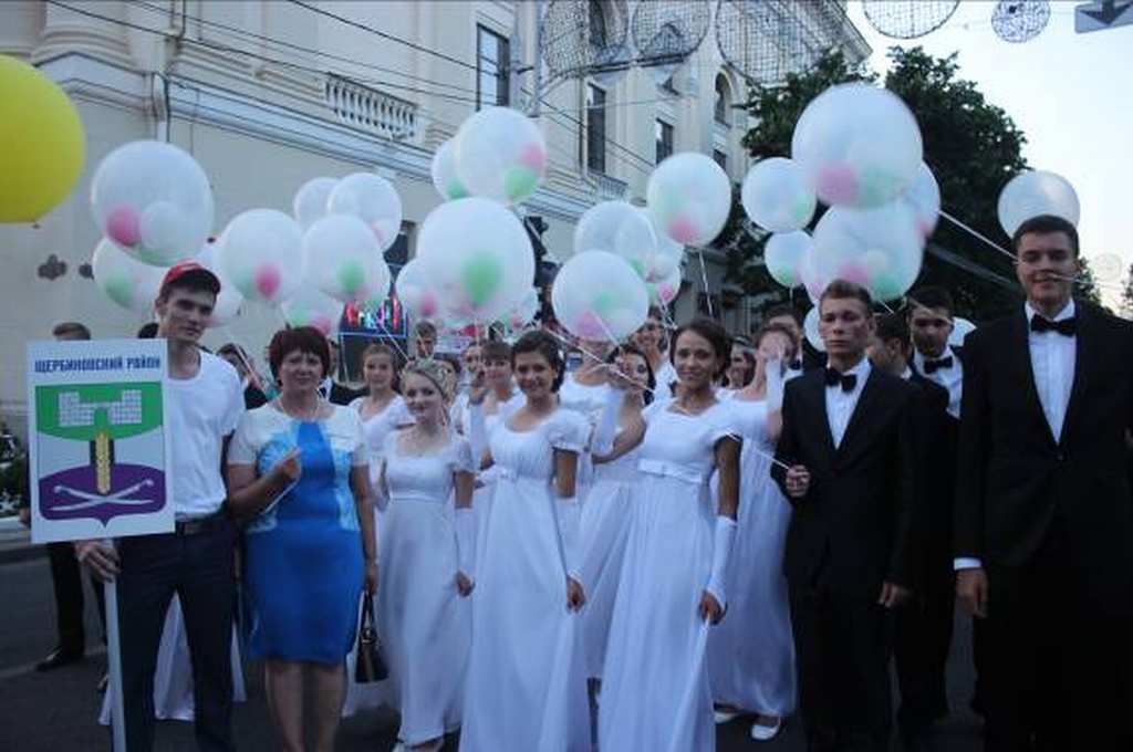 В состав делегации входили 40 успешных, позитивных, лучших выпускников 2016 года Щербиновского района. Среди них 12 учащихся с медалью «За особые заслуги в учении» из СОШ № 1, 2, 3, 5, 6.