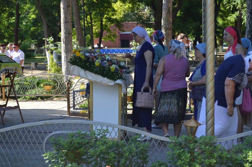 Отец Александр обратился к пришедшим станичникам и приехавшим из других благочиний Ейской епархии на совместную молитву с пастырским словом и поздравил всех с праздником всех Святых земли Русской.