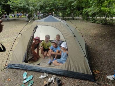 Юные туристы сначала собрались на построение, а затем, получив карты с маршрутами, отправились преодолевать различные препятствия, соревноваться в смелости, ловкости и выносливости, а также закрепить свои впечатления, изобразив их мелками на асфальте. Ребята смогли проявить свои туристические навыки на следующих станциях: станция «Полоса препятствий», где участники продемонстрировали свои навыки и умения справляться с трудными жизненными ситуациями; станция «Найди клад», где у ребят была возможность показать свои познания в туризме. И даже после того, как все маршруты были пройдены, никто не хотел расходиться, веселый детский смех еще долго звучал в парке.