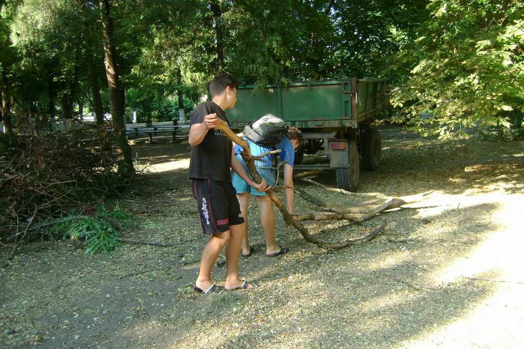 «В парке всегда много работы, - говорит директор парка В.Т.Стрижак, территория большая, много насаждений, тротуарных дорожек, и все должно быть в порядке и чистоте, чтобы каждому жителю станицы было приятно прийти в парк».Каждое утро Валентина Тимофеевна расставляет ребят по местам работы в парке:кто-то полет траву, сгребает и вывозит,кто-то собирает и грузит ветки.Девочки подметают сухую листву.Ребята работают дружно, каждый отвечает за свой участок.А поработав, приложив свой труд и затратив усилия, придя в парк вечером, они уже не бросят мусор, и может даже сделают замечание тому, кто это сделает.Работая, подростки приобщаются к труду, учатся ценить свой труд и труд других людей, учатся работать в коллективе и находят новых друзей.