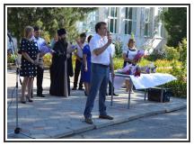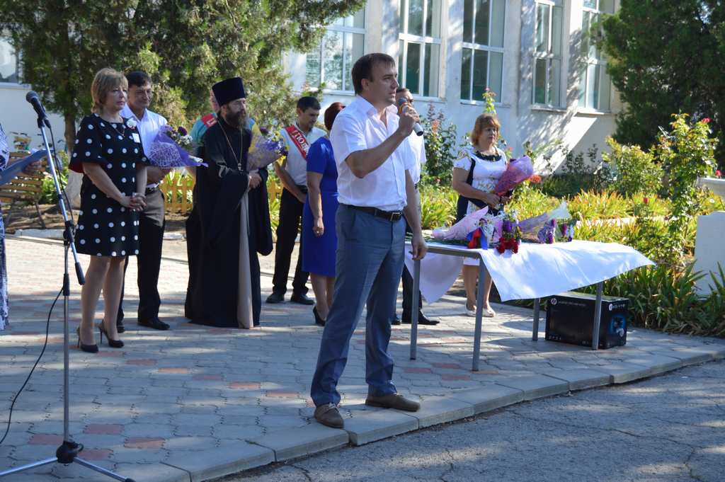 От имени губернатора Краснодарского края ребят поздравил руководитель департамента информационной политики Краснодарского края В.В.Пригода. Он пожелал ребятам успехов, счастья, добра и благополучия и преподнес школе подарок.