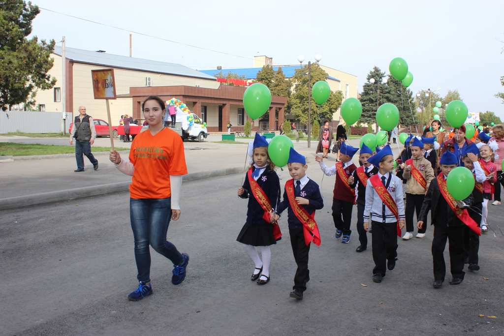 Парад получился ярким и запоминающимся, 324 первоклассника из школ Щербиновского района в школьной парадной форме, с лентами «Первоклассник», с эмблемами прошлись по центральной площади, держа в руках воздушные шарики.