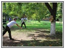 Был проведен ритуал посвящения юных казачат в казаки. После торжественного повязывания галстуков с символикой кубанского флага всех ребят ждал «Казачьи курень» в Центральном парке, где юные казачата могли поучаствовать в мастер - классах по казачьим военно-прикладным видам спорта: по борьбе, метанию ножа, разборке и сборке АК, владению казачьей плеткой.