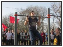С показательными выступлениями к нам приехали ребята из Краснодара - Даниил Завгородний и Александр Гедзик. В номинации "Фристайл" первое место завоевал - Гугель Артем, второе место - Костромин Николай, третье - Нетребко Дмитрий. В номинации "Троеборье" победу одержал Костромин Николай, второе - Лозинский Анатолий, третье - Ткаченко Вячеслав.