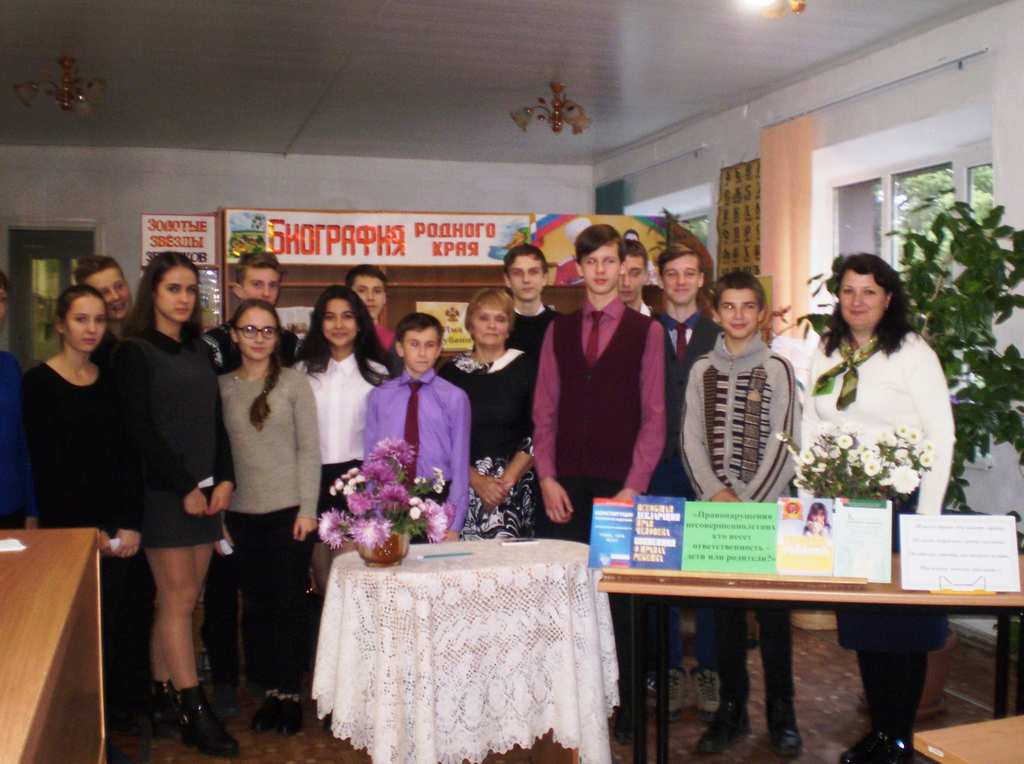 16 ноябряв МБУК «Межпоселенческая центральная библиотека» вниманиюучащихся старших классов СОШ № 1 была предложена правовая экскурсия: «Правонарушения несовершеннолетних: кто несет ответственность родители или дети?».