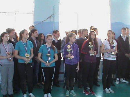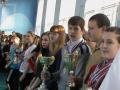 Учащиеся аплодисментами встретили лучших спортсменов школы, которые внесли кубки, завоёванные в V Всекубанской спартакиаде школьников.