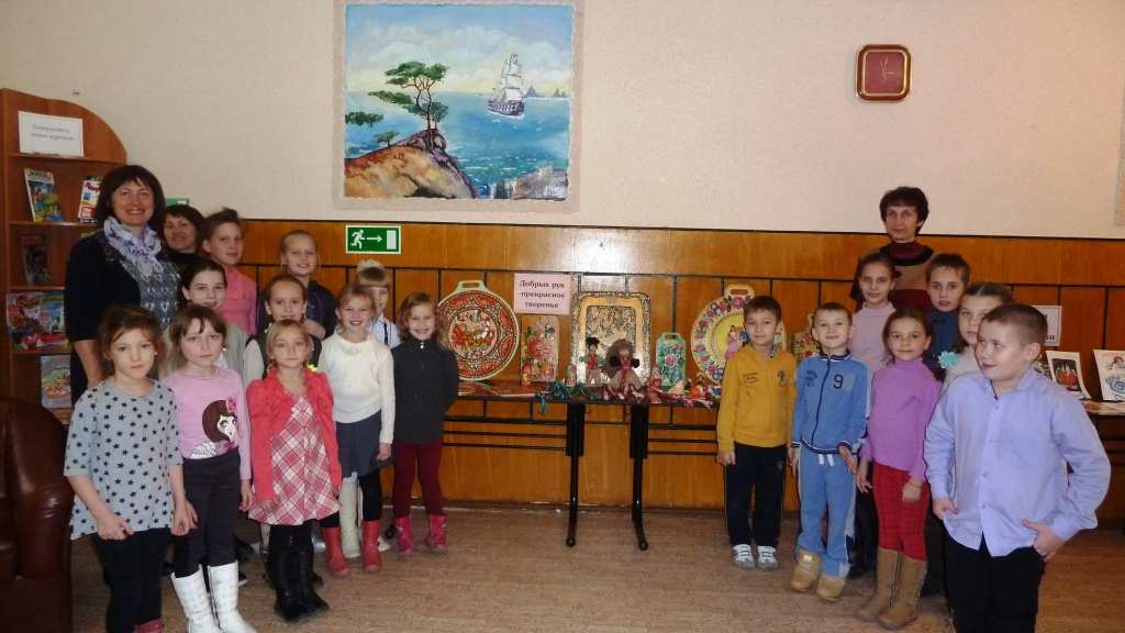 С воспитанниками Дома Детского творчества был проведен Час Доброты «Твори добро на благо людям». К мероприятию в читальном зале была оформлена выставка работ ребят из Дома Детского Творчества «Добрых рук прекрасное творение», с которой знакомились все посетители детской библиотеки. Библиотекарь Аникина Г.Б. вела разговор с детьми о том, что такое доброта, отзывчивость. На примере русских народных сказок выяснили, какие герои являются добрыми, а какие злыми. Ребятам были показаны слайды презентации «Чтобы радость людям дарить, надо добрым и вежливым быть» и видеоролик «Твори добро, и оно к тебе вернется».