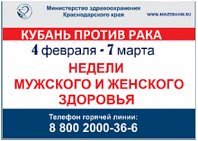 В рамках краевой акции в феврале-марте 2017 года министерство здравоохранения края проведет Недели мужского и женского здоровья. Попасть на прием к онкологам во время акций можно будет в поликлинике по месту жительства или в ближайшем онкологическом диспансере, бесплатно и без направления. Начало акций приурочено к Всемирному дню борьбы с раковыми заболеваниями, который отмечается 4 февраля.