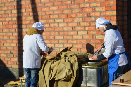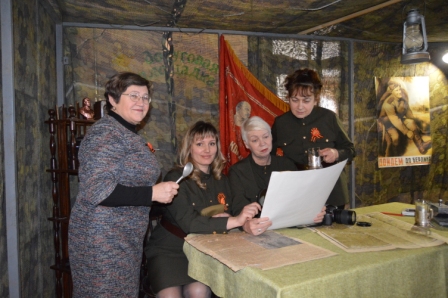 В фойе Центра народного творчества участникам праздника были представлены экспозиция военных лет, выставка портретов ветеранов Великой Отечественной войны, выставка «Бессмертного полка», выставка школьных альбомов «Месячник - 2016», архивные материалы. Преподаватель-организатор ОБЖ средней школы № 3 Васьков И.П. проводил с учащимися школ мастер - класс по разборке и сборке АК, возле ЦНТ была организована полевая кухня, где каждый участник мероприятия смог испробовать солдатскую кашу.