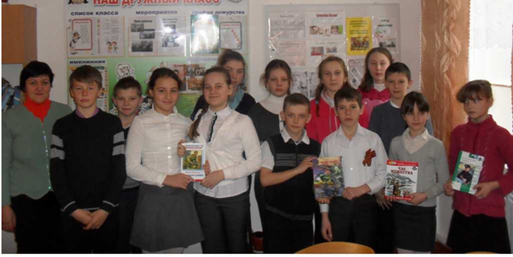 Библиотекарь Толочко Ю.В. рассказала о тяжелом времени Великой Отечественной войны в нашем районе, о том, как люди выживали, как боролись с немцами. С большим интересом ребята слушали рассказ о подпольной организации, действовавшей на территории нашего района, которую возглавлял А.Герман, об односельчанах, которые воевали на разных фронтах нашей Родины.