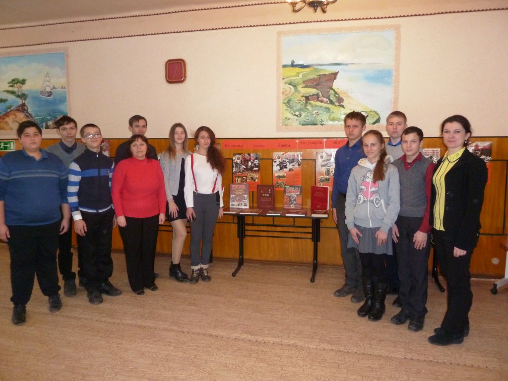 Библиотекарь Сарана Т.А., ведущая мероприятия, рассказала подросткам об оккупации Кубани и Щербиновского района в 1942-1943 годах и о партизанском движении на Кубани. Отдельная страничка историко-патриотического часа была посвящена щербиновским подпольщикам. Ребята узнали: о руководителе щербиновского подполья А. А. Германе, о сестрах Наконечных и их брате Т. Наконечном, редакторе газеты «За большевистские колхозы», об учительнице Е.И. Гришко и ее 17-летнем сыне А. Гришко, о парторге Е. М. Вишняковой. Они вели подрывную деятельность на территории, занятой врагом: выясняли размещение и численность гарнизонов противника и карательных отрядов, взрывали железнодорожное полотно, склады оружия и боеприпасы, громили обозы, устраивали засады, печатали и расклеивали листовки, сообщали правду о положении дел на фронтах, призывали на борьбу с захватчиков своих земляков. Поразил ребят рассказ библиотекаря о мужестве арестованных подпольщиков, которые, несмотря на нечеловеческие пытки, выстояли, не отступили и не предали. Благодаря их мужеству были спасены около 2000 человек, занесенные гитлеровцами в «черные списки», подлежащие беспощадному уничтожению: коммунисты, комсомольцы, советские активисты и даже пионеры. Рассказ библиотекаря сопровождался показом слайдов презентации «Щербиновские подпольщики». Подростки читали стихи местных поэтов, посвященных мужеству щербиновских подпольщиков.