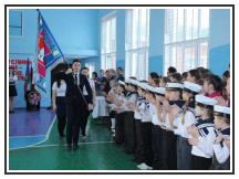 На линейке присутствовали гости: начальник управления образования администрации муниципального образования Щербиновский район - Городицкая Любовь Ивановна; герой труда Кубани, председатель СПК (колхоза) "Знамя Ленина" - Хараман Юрий Гаврилович; председатель Совета ветеранов Щербиновского района - Кряжов Михаил Николаевич; заместитель председателя Совета ветеранов Щербиновского района - Коваль Николай Иванович.