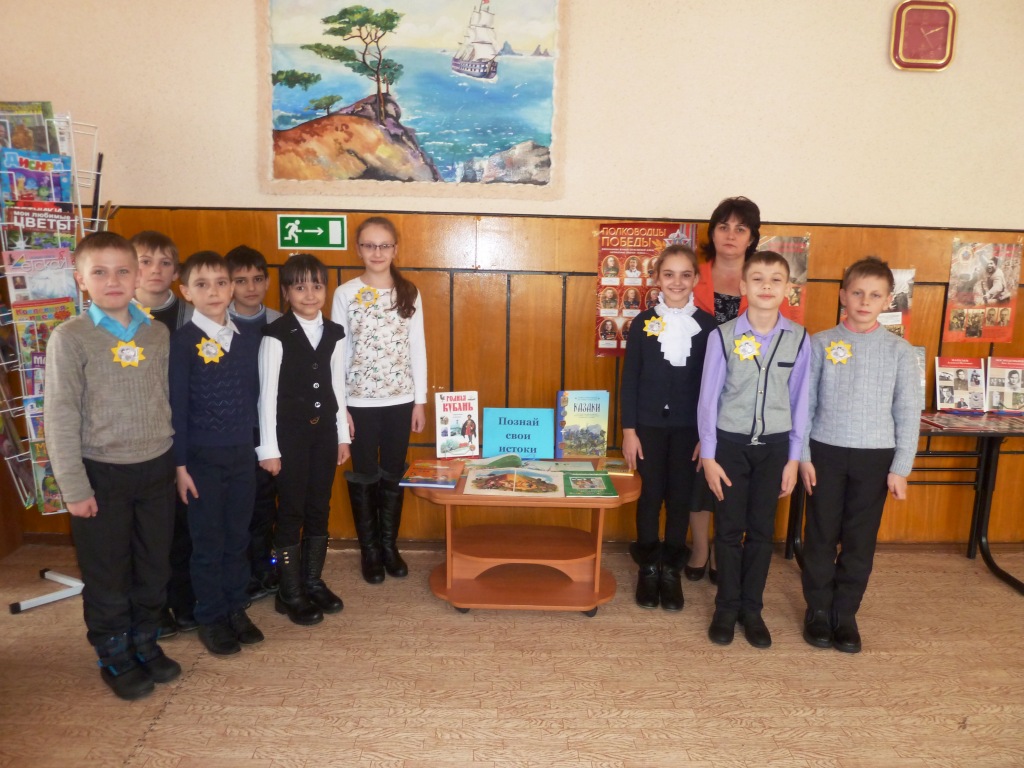 Знать историю своей страны и своего края помогают книги с книжной выставки «На Кубани живет богатырский народ и дела у него богатырские», с которыми библиотекарь познакомила юных казачат.