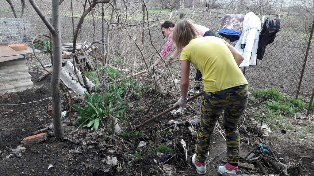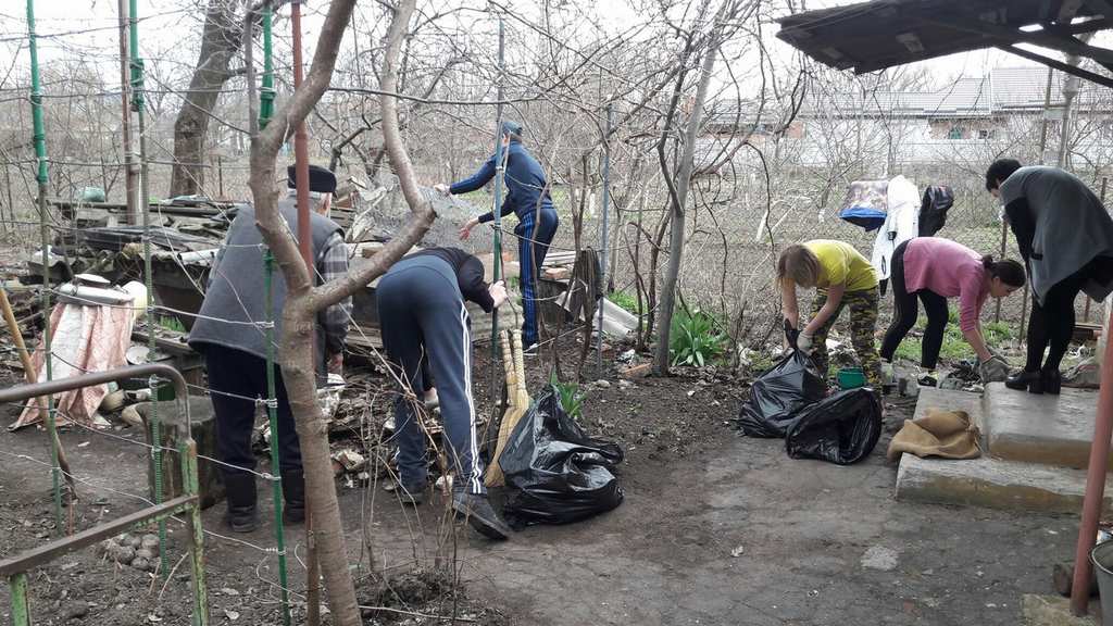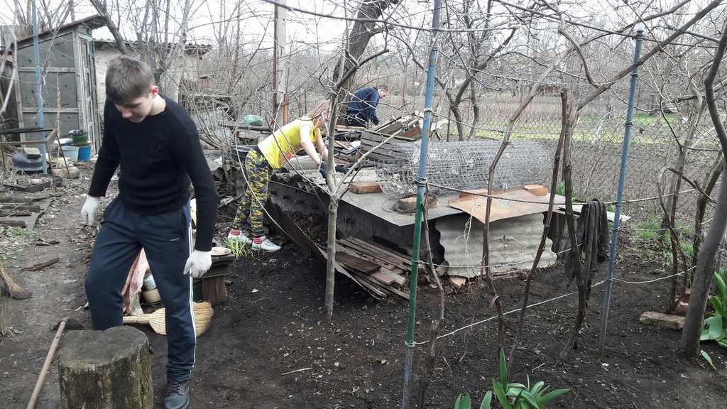 Ребята навели порядок во дворе ветерана. Для вывоза мусора администрация Старощербиновского сельского поселения предоставила телегу.