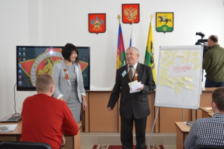 В течение дня 120 активистов из 11 муниципальных образований Краснодарского края (Тихорецкий, Староминский, Крыловский, Ейский, Щербиновский, Кавказский, Кущевский, Павловский, Новопокровский, Белоглинский, Выселковский район) проходили обучение на трех площадках. Под опытным руководством педагогов Кубанского государственного университета добровольцы и активисты проекта «ПОКОЛЕНИЯ БЕССМЕРТНОГО ПОЛКА» познакомились с принципами организации мероприятий героико-патриотической направленности, приобрели навыки социального проектирования, выработали совершенно новые идеи по реализации проекта на территории своего муниципального образования, познакомились с формами работы ресурсного обеспечения проекта.
