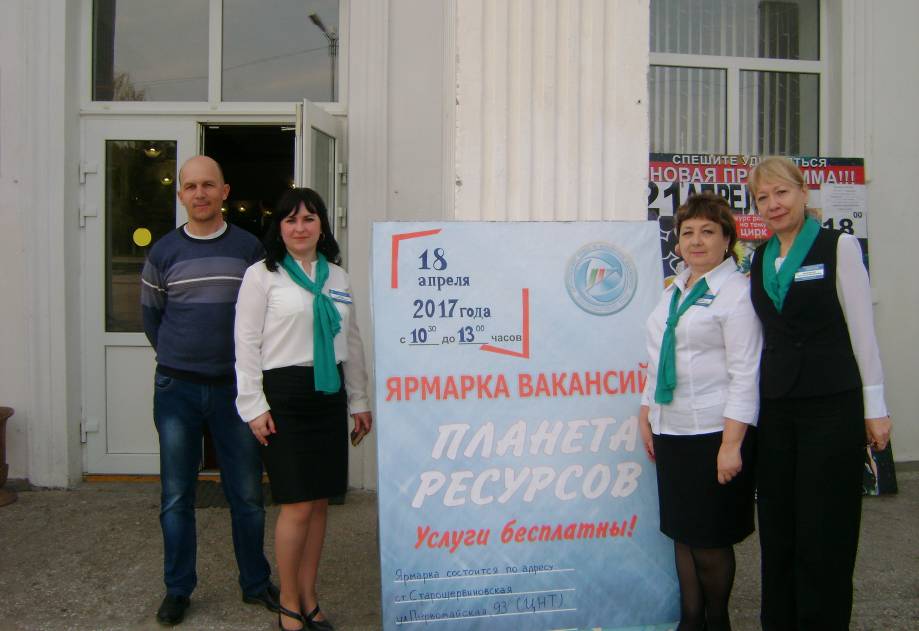 18 апреля 2017 года в Центре народного творчества Старощербиновского сельского поселения состоялась районная Ярмарка вакансий учебных рабочих мест «ПЛАНЕТА РЕСУРСОВ». На Ярмарке присутствовали представители 14-ти учебных учреждений среднего и высшего профессионального образования из различных районов Краснодарского края и Ростовской области. Каждый представитель старался как можно подробнее рассказать учащимся школ о своем учебном заведении, о тех профессиях, которые можно получить, поступив обучаться именно к ним. Образовательными учреждениями было привезено большое количество буклетов, листовок, презентаций с информацией о правилах поступления, преимуществах обучения и перспективах дальнейшего развития в профессии.Некоторые учебные заведения показывали такой мастер-класс, что было интересно не только школьникам, но и взрослым участникам.Всего в ярмарке приняли участие 467 учащихся из 8 школ Щербиновского района. Старшеклассники внимательно изучали буклеты и вместе со своими педагогами задавали вопросы представителям учебных заведений.Во время проведения ярмарки вакансий 80 граждан ищущих работу, из них 63 человека – безработные, состоящие на учете в Центре занятости и 17 граждан, обратившиеся в целях поиска работы, смогли познакомиться с предлагаемыми вакансиями 11-ти организаций района. Всего для трудоустройства было представлено около 50-ти вакансий различного направления: санитар ветеринарный, психолог, педагог социальный, медсестра, дворник, младший воспитатель, официант, крупье, продавец продовольственных товаров, страховой агент, горничная, контролер билетов и д.р. Специалистами службы занятости было выдано 26 направлений для трудоустройства по имеющимся вакансиям. По итогам ярмарки 5 человек уже смогли трудоустроиться. Также граждане могли ознакомиться с вакансиями, предлагаемыми работодателями Краснодарского края и в других регионах Российской Федерации. Всего в ярмарке вакансий учебных рабочих мест «ПЛАНЕТА РЕСУРСОВ» приняли участие около 550 человек.