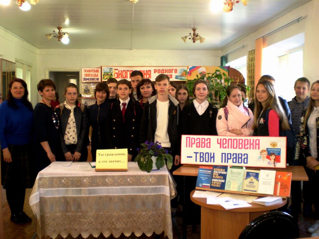 27 апреля 2017 года в читальном зале МКУК «Щербиновская межпоселенческая библиотека» для учащихся старших классов МБОУ СОШ № 1 им. Ляпидевского был проведен День правовой информации «Ты гражданин, а это значит…», который открылся книжной выставкой «Права человека – твои права».