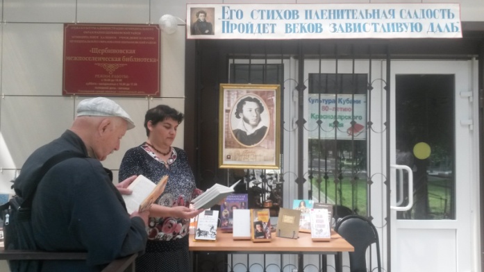 МКУК «Щербиновская межпоселенческая библиотека» 6 июня 2017 года приняла участие во Всекубанской акции «Читаем Пушкина», приуроченной ко дню рождения великого поэта.