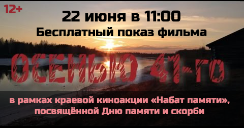 Кинотеатр «Родина» приглашает жителей района 22 июня в 11.00 на бесплатный показ фильм «Осенью 41-го».