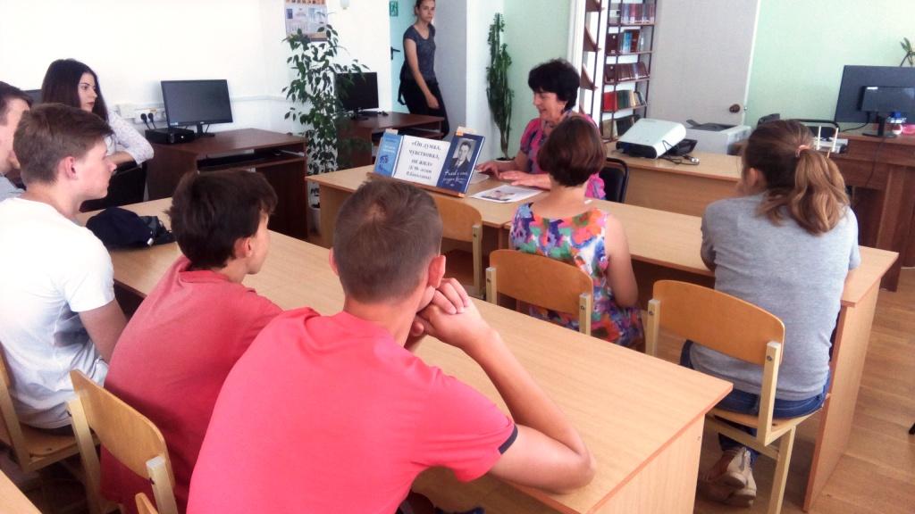 В ходе реализации Проекта «Литературная эстафета «Каков я есть, рассудит время», посвященного 90-летию со дня рождения В.Б. Бакалдина, вниманию студентов Щербиновского индустриального техникума специалистами межпоселенческой библиотеки был предложен литературный портрет «Он думал, чувствовал, он жил», в ходе которого звучали стихи, отражающие различную тематику его творчества, прослежен биографический и творческий путь поэта. Студенты также узнали, что роль учителя в становлении личности, место учителя в обществе, школа и дети – эти темы стали важными и любимыми в литературном творчестве Бакалдина.