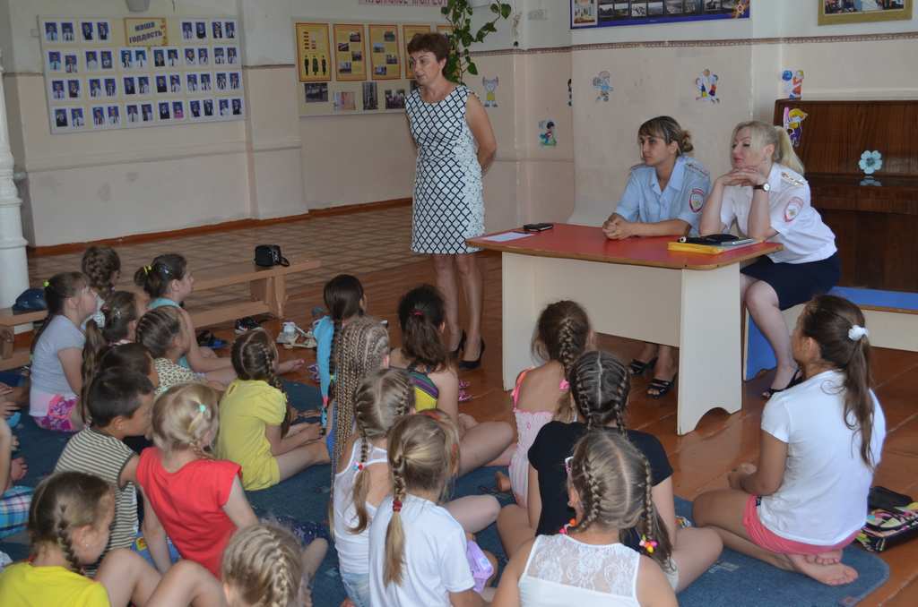 В мероприятии принимают участие заместитель председателя комиссии В.И. Гришко, инспектора ОПДН ОМВД России по Щербиновскому району, инспектор по пропаганде безопасности дорожного движения ГИБДД ОМВД России по Щербиновскому району, медицинские сестры МБУЗ ЦРБ. Разговор идет о правах, обязанностях, ответственности по закону несовершеннолетних, как не стать жертвой преступления, как себя вести, если оказался в трудной ситуации. У ребят начались продолжительные летние каникулы, а это значит, что наступило беззаботное время для детей, когда они зачастую забывают об опасности и чаще всего находятся на проезжей части без присмотра взрослых. Также взрослые объясняют ребятам правила поведения на улице и на воде, как уберечься от теплового удара. напоммнают ребятам о необходимости соблюдения Закона Краснодарского края от 21 июля 2008 года № 1539- КЗ «О мерах по профилактике безнадзорности и правонарушений несовершеннолетних в Краснодарском крае».