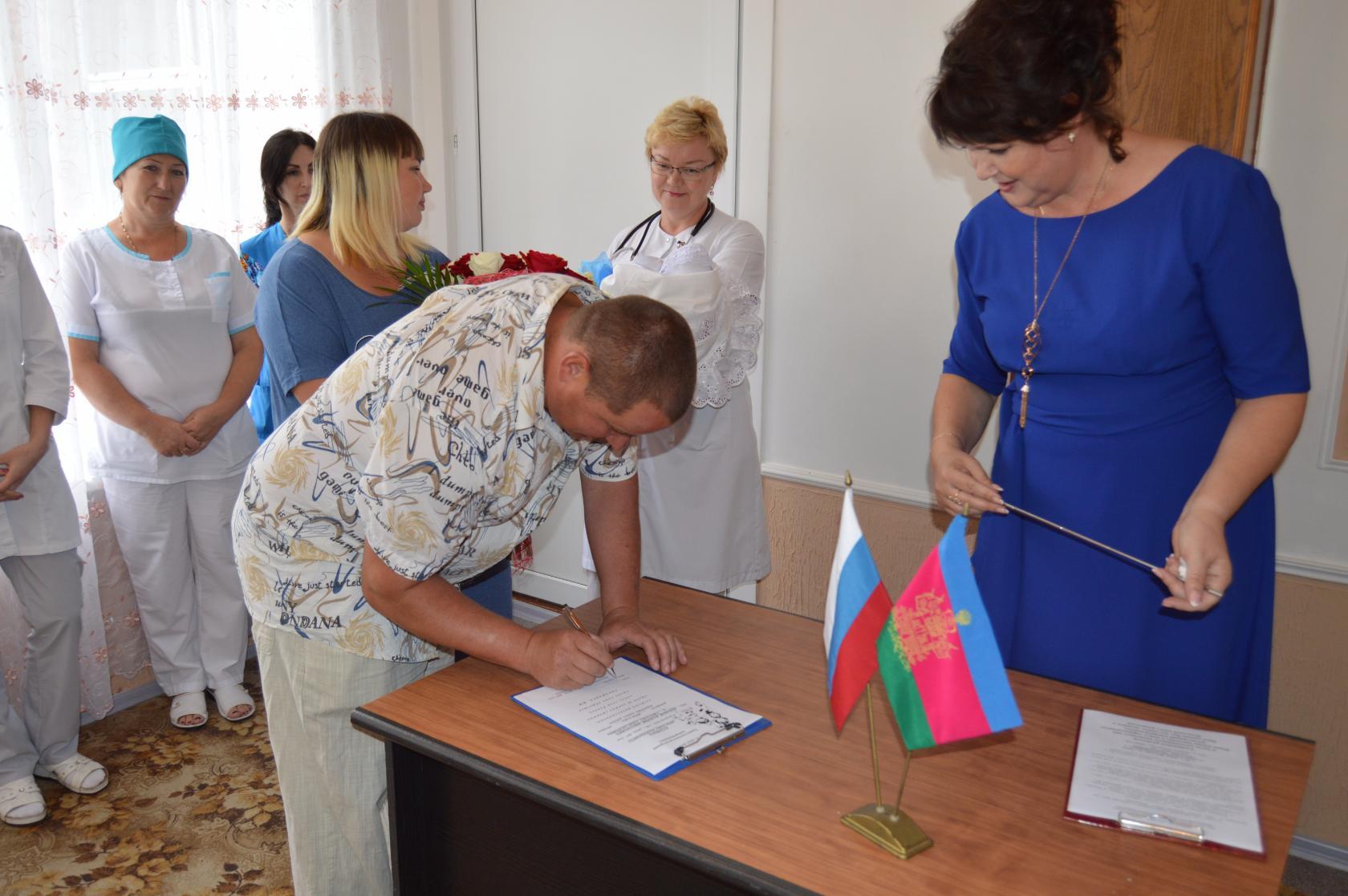 3 июля 2017 года в семье Кутового Валерия и Светланы родился ребёнок - сын Ярослав. В день выписки из родильного дома, сотрудники отдела ЗАГС Щербиновского района провели торжественную регистрацию новорожденного. «Рождение ребенка в семье - это большое событие! С его появлением на свет в семью приходит радость, надежда на будущее, с его рождением связаны и чувства ответственности отца и матери. Любите, берегите своих детей, учите их честности, не скупитесь на заботу и нежность. Ваша одобряющая улыбка так нужна им на жизненном пути», - обратилась Наталья Малинка к Валерию и Светлане. Со словами поздравлений к семье обратились заместитель главы района Ольга Баркан и руководитель отдела ЗАГС по Щербиновскому району Татьяна Хорошайло.