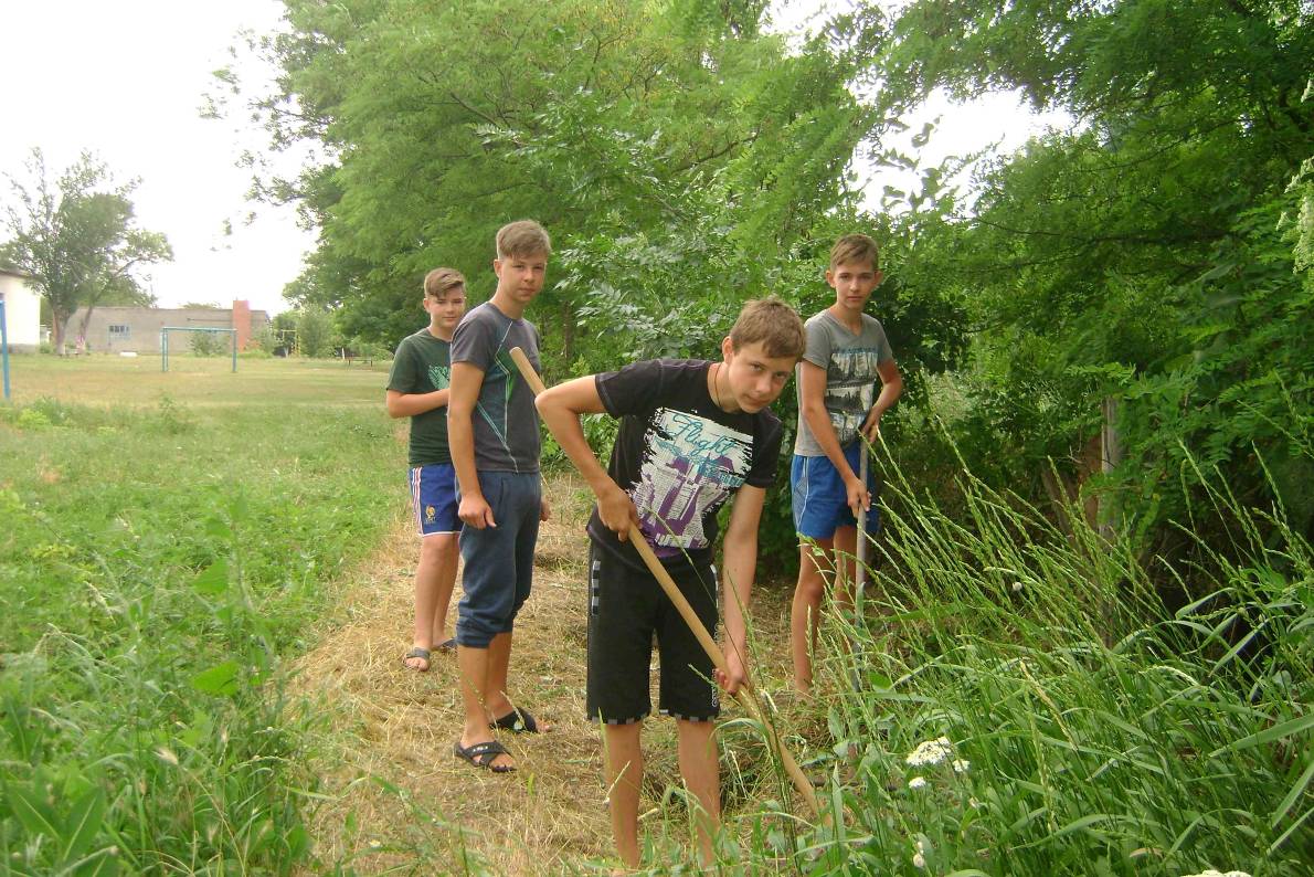 Двадцать несовершеннолетних граждан работали в крестьянском фермерском хозяйстве Дорошенко А.Е. в качестве рабочих зеленого хозяйства. На семенных участках пшеницы они производили ручную прополку, обрывая колосья других видов колосовых культур.Также, ребята занимались благоустройством территории своих школ, пололи клумбы, приусадебные участки, парки. Всего в школах в июне-июле 2017 г. отработали 62 подростка. Ребята ответственно выполняли поручения наставников в борьбе с сорняками на территории своих школ.