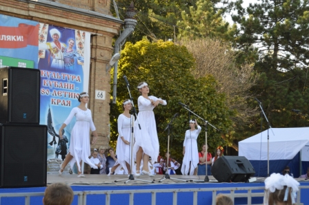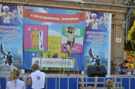 Жители станицы Старощербиновской собрались на центральной площади станицы, где прошёл праздничный концерт «Кубанский край – страна родная».