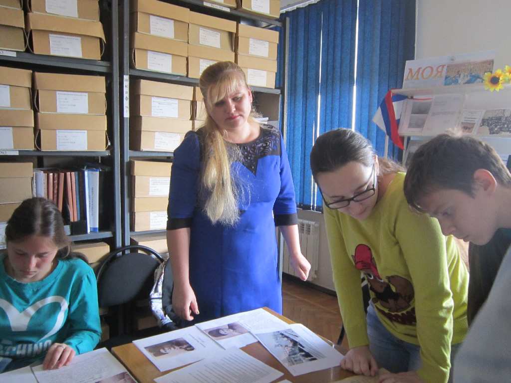 Ребята ознакомились с архивными материалами, отражающими события революционного периода 1917-1918 года в нашем районе - записями воспоминаний очевидцев, фотографиями, газетными публикациями и др.