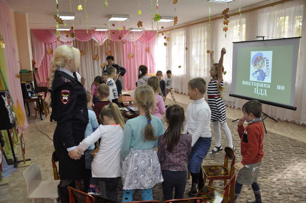 В игровой форме педагоги детского сада совместно с инспектором обучали детей старших групп основам безопасного поведения на дороге в качестве пешехода и пассажира играли в интересную и познавательную игру «Знатоки ПДД» в ходе которой на мультимедийный экран выводился вопрос, а команды малышей- знатоков должны были дать на него правильный ответ. Был в игре «Черный ящик» и конкурс капитанов. В музыкальных паузах под песни о правилах дорожного движения инспектор совместно с педагогами и детьми проводили физкультминутки и веселые танцы.