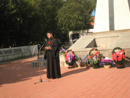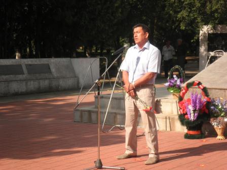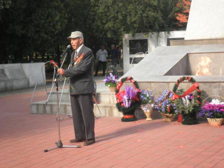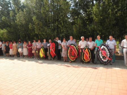 В назначенное время у мемориала на центральной площади начался митинг. Первый заместитель главы администрации муниципального образования Щербиновский район А.Д.Пигарев обратился к ветеранам со словами безмерной благодарности за их мужество, отвагу и героизм, проявленные в годы той страшной войны. Он пожелал ветеранам и их семьям здоровья и долголетия, а также призвал молодое поколение помнить и чтить имена тех, кто ценой своей жизни завоевал Победу.