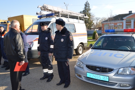 С 15 по 23 ноября 2017 года на территории района проходят комплексные командно-штабные учения с органами управления и силами единой государственной системы предупреждения и ликвидации чрезвычайных ситуаций Краснодарского края по подготовке к осенне-зимнему периоду 2017-2018 годов. Согласно плану проведения учений, в районе отработан ряд организационно – технических мероприятий, в том числе: 15 ноября проведено совместное заседание комиссии по предупреждению и ликвидации чрезвычайных ситуаций, пожарной безопасности и органов управления муниципального звена ТП РСЧС. Сегодня на территории станицы Старощербиновской проведен смотр готовности сил и средств (техники) муниципального звена ТП РСЧС. Проведя осмотр, заслушав доклады ответственных лиц, сделан вывод, что силы и средства муниципального звена ТП РСЧС готовы к реагированию на внештатные ситуации (угроза, возникновение чрезвычайных ситуаций) в осенне-зимний период 2017-2018 годов. По плану проведения учения 22 и 23 ноября на территории Щербиновского индустриального техникума и Центральной районной больницы будет проведена отработка практических мероприятий согласно полученных вводных.