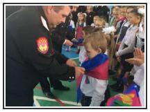 Атаман Старощербиновского казачьего общества Щербинин Андрей Владимирович вручил ребятам казачий наказ.
