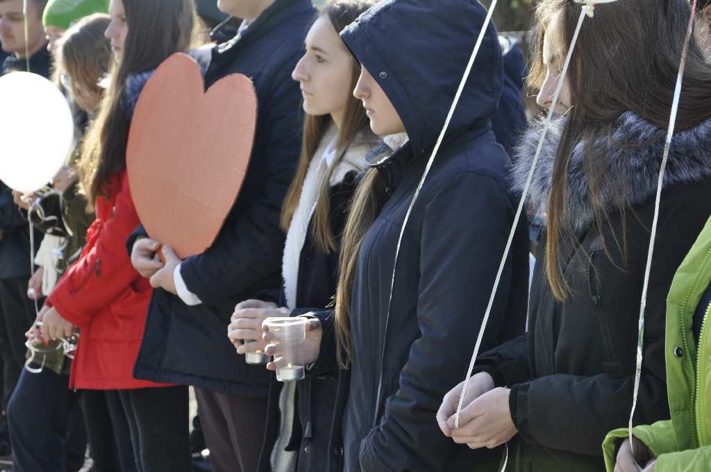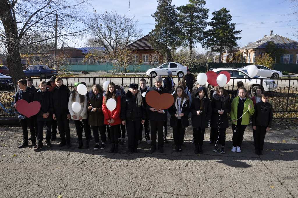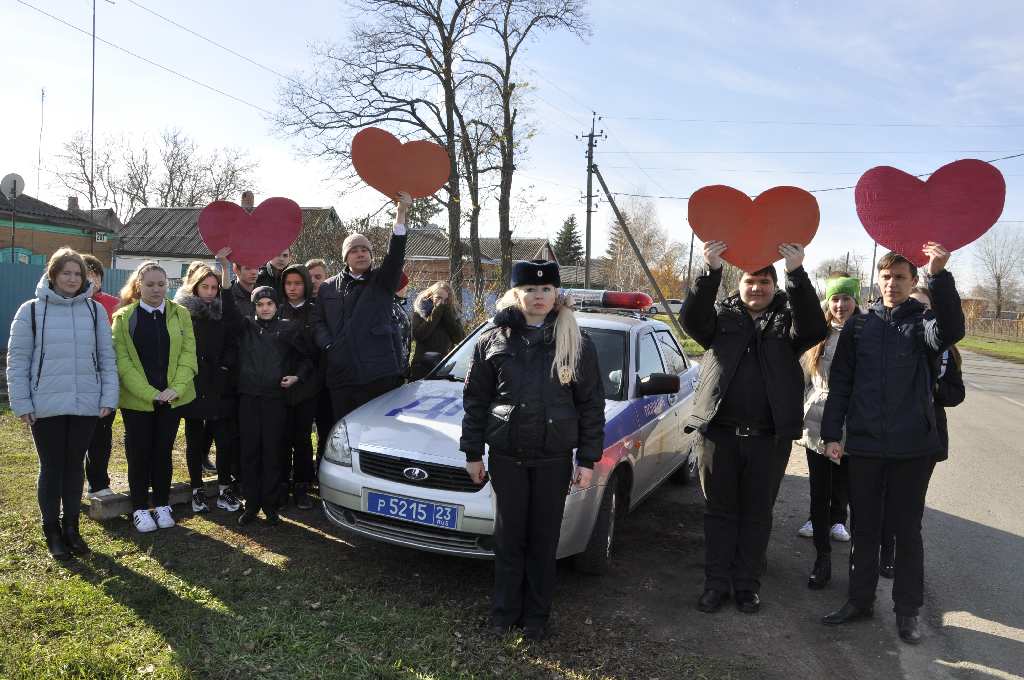 Ребята выстроились на обочине по обе части дороги и держали в руках красные картонные сердца по числу погибших в ДТП в Щербиновском районе за истекший период 2017г., а также белые воздушные шары как символ душ погибших и свечи. Инспекторы останавливали автотранспорт и совместно с учащимися проводили профилактические беседы с водителей и пассажирами, вручали памятки напоминания.