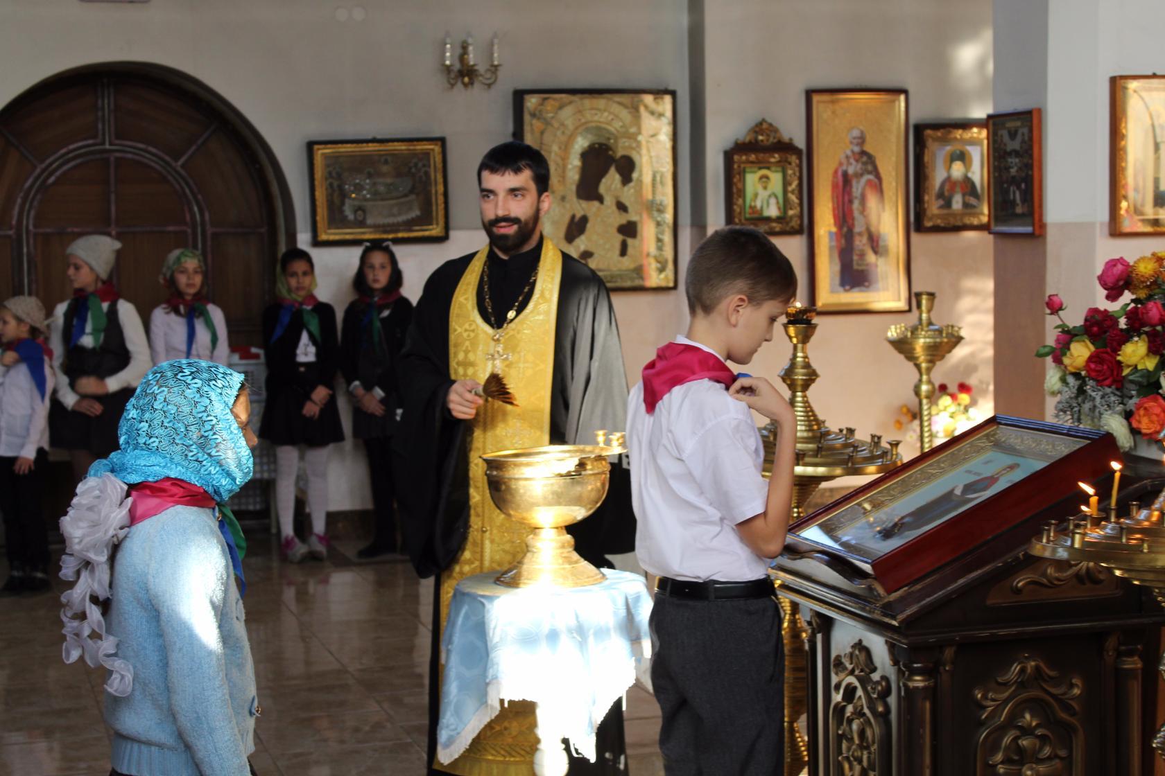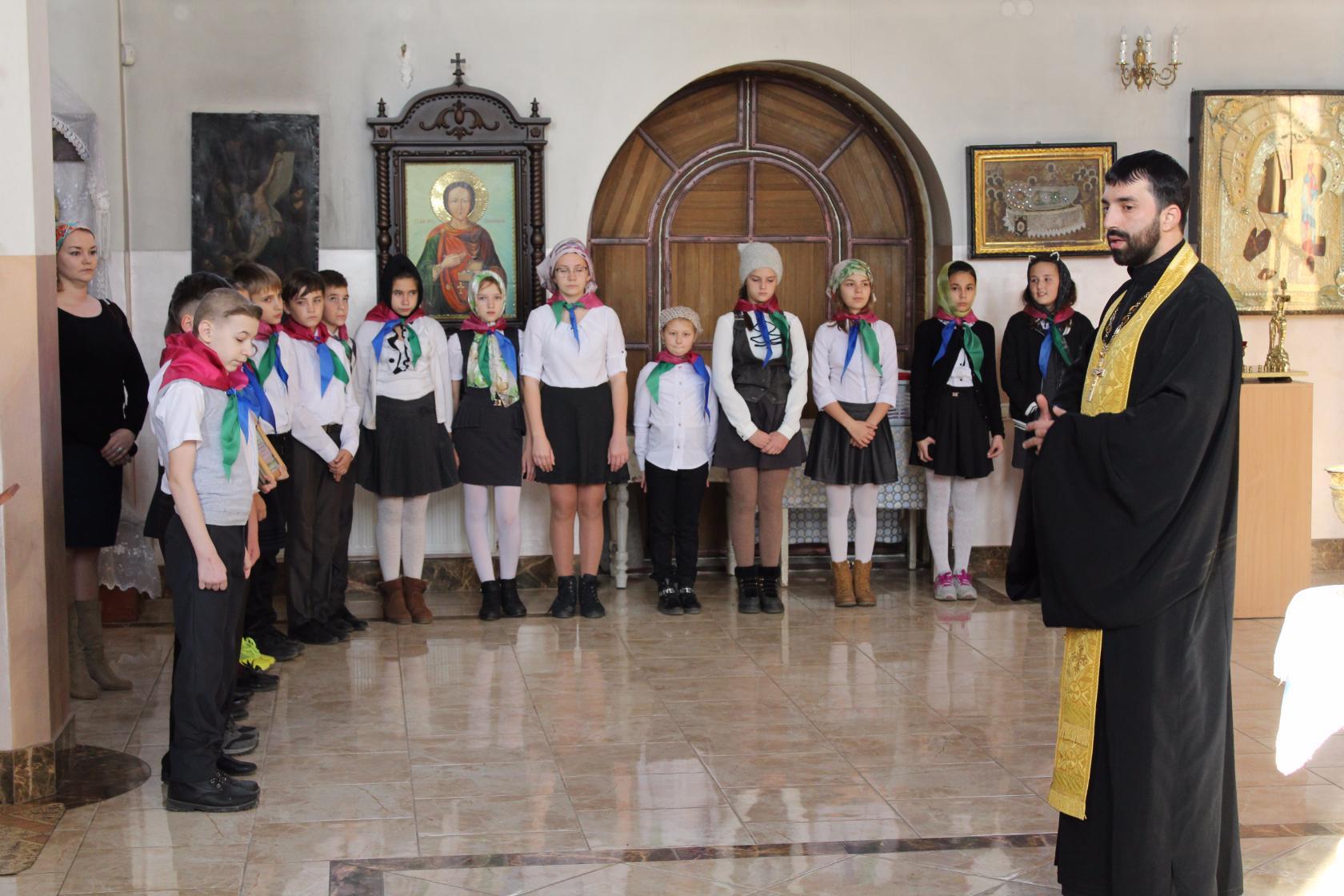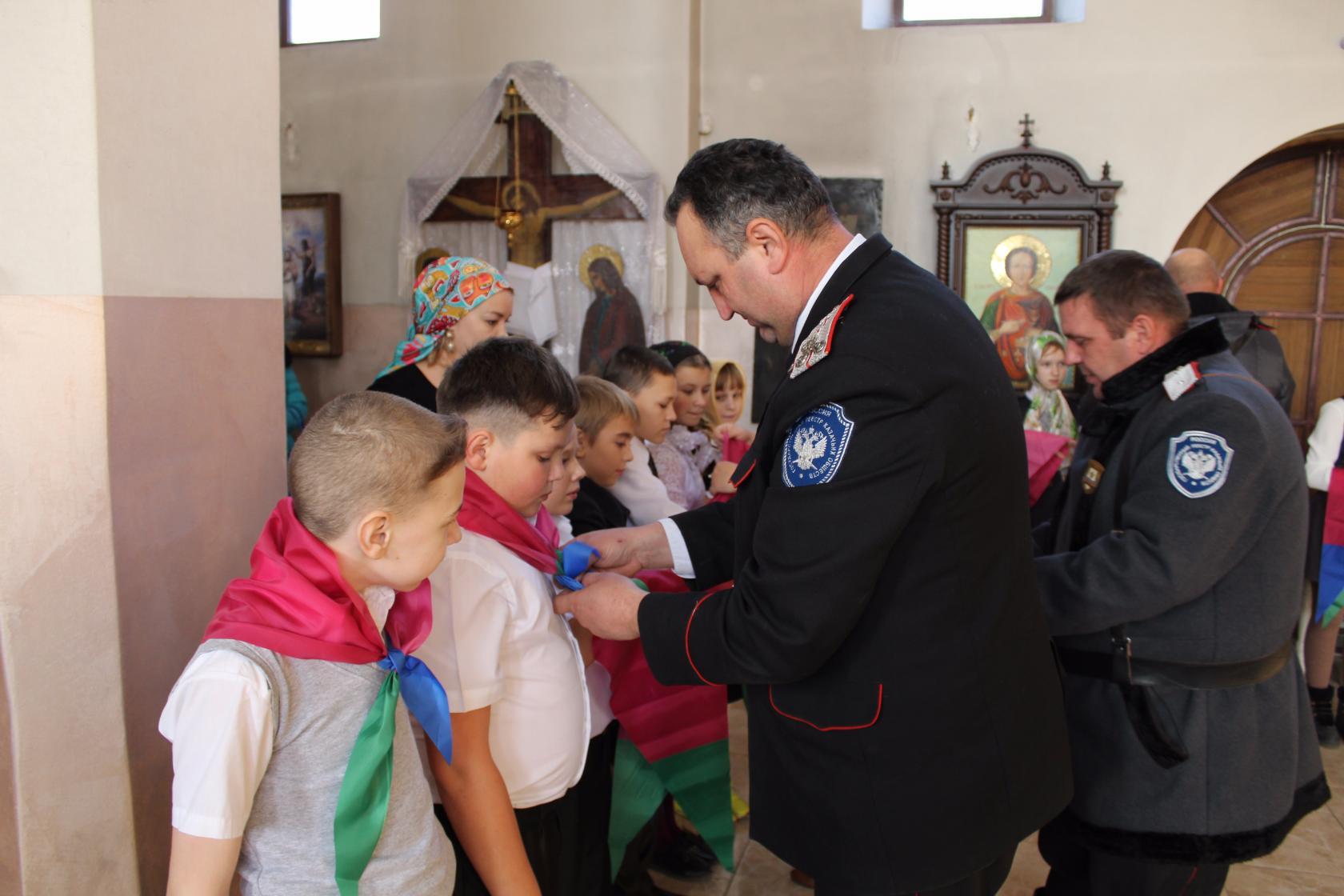 17 ноября 2017 года в Храме Пресвятой Богородицы станица Старощербиновская состоялось «Посвящение в казачата» учащихся 5-х классов школ № 2, 9. Иерей Виталий рассказал казачатам о вере казака, о духовных ценностях и традициях кубанских казаков.